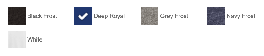 Black Frost, Deep Royal, Grey Frost, Navy Frost, White