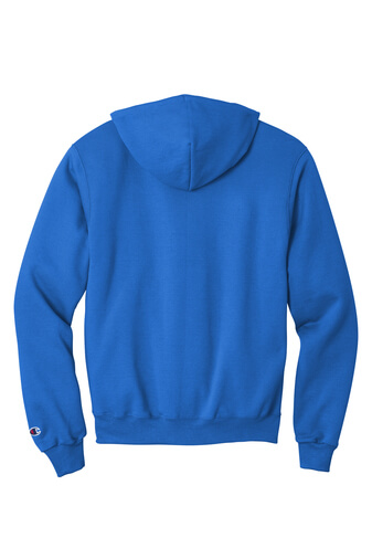 9-ounce, 50/50 U.S. grown cotton/poly 50/40/10 cotton/poly/black poly (Light Steel) 50/48/2 cotton/poly/black poly (Silver Grey) Double Dry technology wicks moisture Two-ply hood with dyed-to-match drawcords 1×1 rib knit sleeve cuffs and hem Front pouch pocket Embroidered Champion “C” logo at left cuff Woven back neck label
