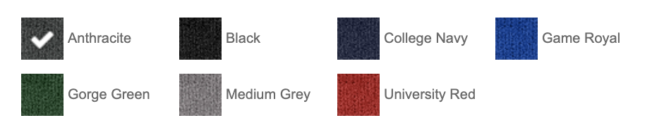 | Color | Anthracite, Black, College Navy, Game Royal, Gorge Green, Medium Grey, University Red |